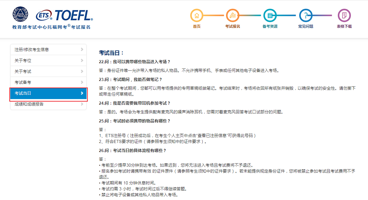 托??荚嚨捻樞驗殚喿x、聽力、口語、寫作,時長約4個小時,在一天內(nèi)完成。托福考試各單項為30分,總分為120分。