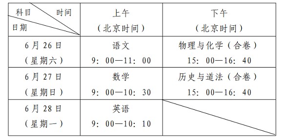 全市中考科目:語文、數(shù)學(xué)、英語、物理與化學(xué)(合卷)、歷史與道法(合卷)、體育。