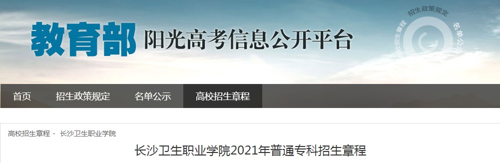 從教育部陽光高考信息公開平臺獲悉,湖南:長沙衛(wèi)生職業(yè)學院2021年普通??普猩鲁桃压?,具體詳情如下: