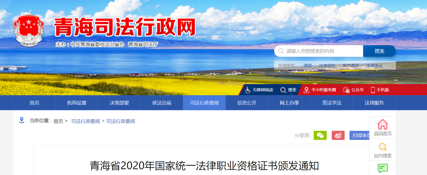 按照司法部有關(guān)要求,現(xiàn)將青海省2020年國家統(tǒng)一法律職業(yè)資格證書頒發(fā)的有關(guān)事項(xiàng)通知如下: