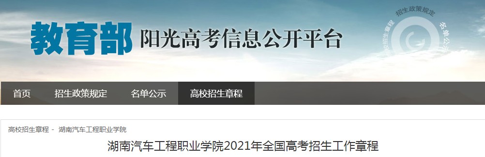 從教育部陽光高考信息公開平臺獲悉,湖南汽車工程職業(yè)學(xué)院2021年全國高考招生工作章程已公布,具體詳情如下:
