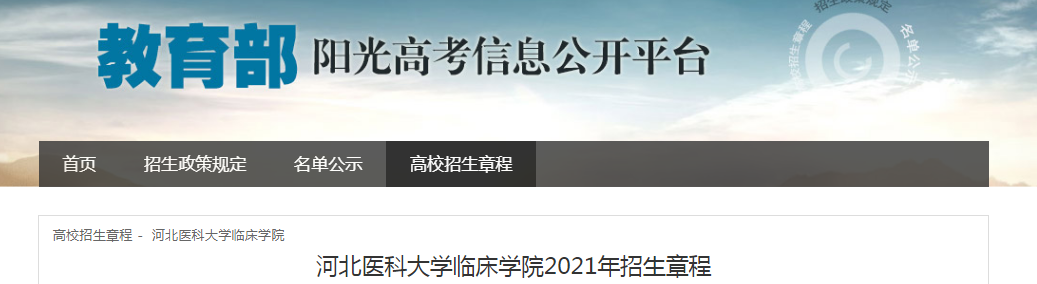 從教育部陽光高考信息公開平臺獲悉,河北醫(yī)科大學(xué)臨床學(xué)院2021年招生章程已公布,具體詳情如下: