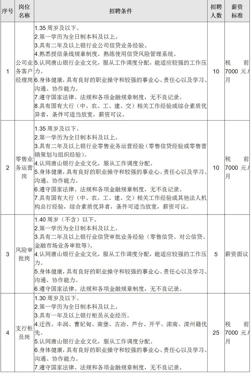 2.薪資待遇詳見(jiàn)招聘崗位,轉(zhuǎn)正一年后并入我行薪酬考核體系,保險(xiǎn)福利待遇同我行正式員工。