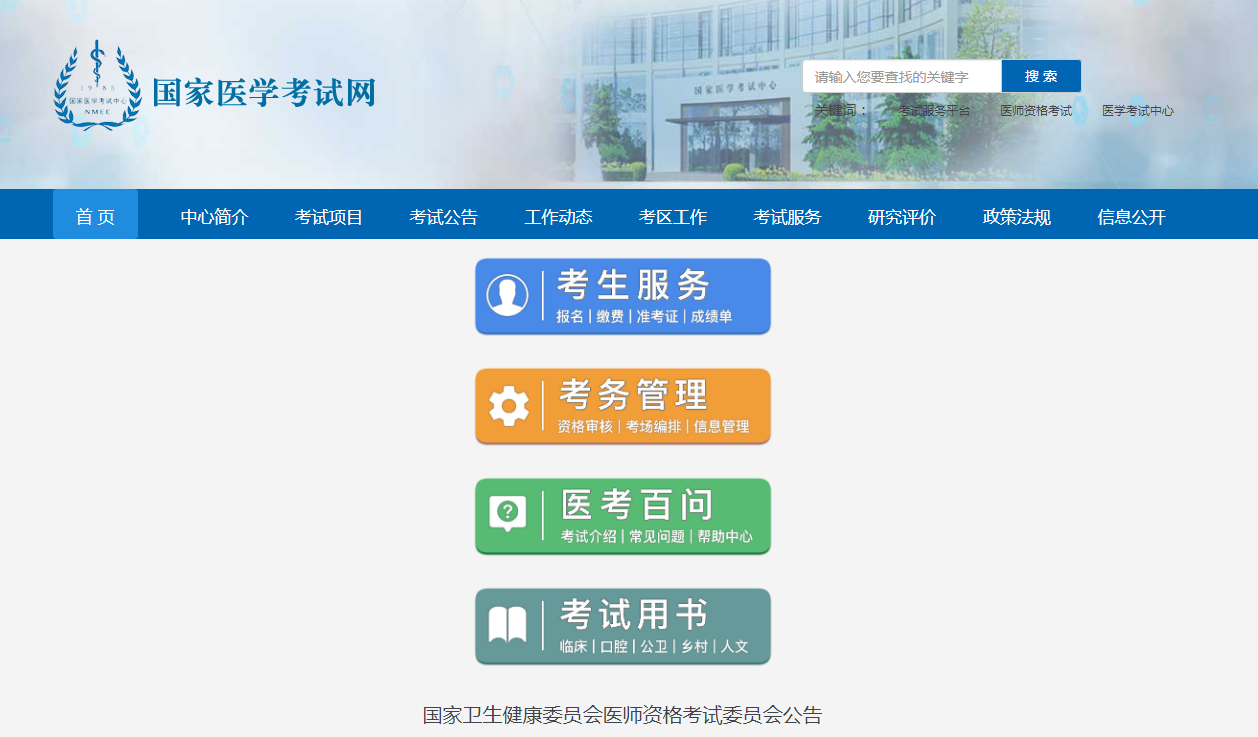 首先,打開國家醫(yī)學(xué)考試中心網(wǎng)站http://www.nmec.org.cn,我們建議在電腦上進(jìn)行報(bào)名,手機(jī)上可以隨時(shí)查看報(bào)名指南。打開網(wǎng)站后,選擇進(jìn)入醫(yī)師資格考試網(wǎng)上報(bào)名系統(tǒng)。