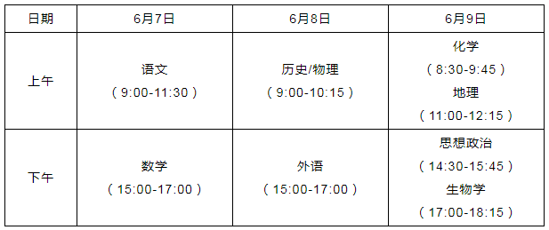 全國(guó)統(tǒng)一高考科目的考試安排以教育部統(tǒng)一公布的安排為準(zhǔn),如有調(diào)整,我省高中學(xué)業(yè)水平選擇性考試科目的考試安排相應(yīng)調(diào)整。