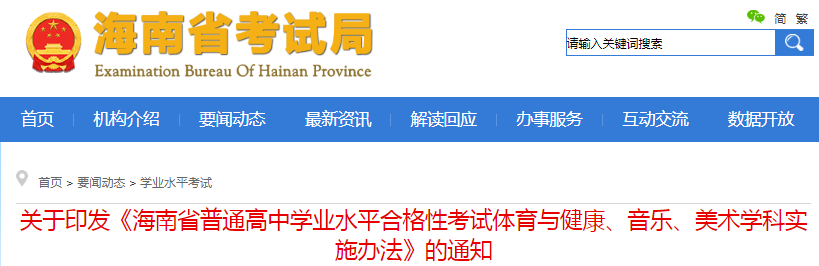 從海南省考試局了解到,關(guān)于印發(fā)《海南省普通高中學(xué)業(yè)水平合格性考試體育與健康、音樂、美術(shù)學(xué)科實施辦法》的通知已經(jīng)發(fā)布,為方便考生了解情況,現(xiàn)將有關(guān)事宜通知如下: