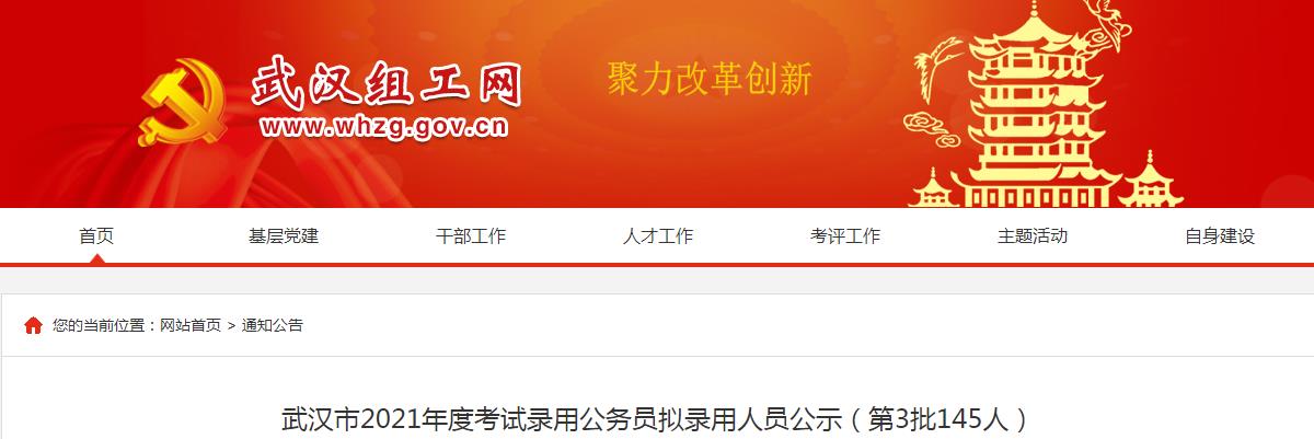 根據(jù)《湖北省2021年度省市縣鄉(xiāng)考試錄用公務(wù)員公告》要求,經(jīng)筆試、面試、考察和體檢,現(xiàn)對(duì)第3批145名擬錄用人員進(jìn)行公示,公示期為5個(gè)工作日。(具體名單點(diǎn)擊查看)