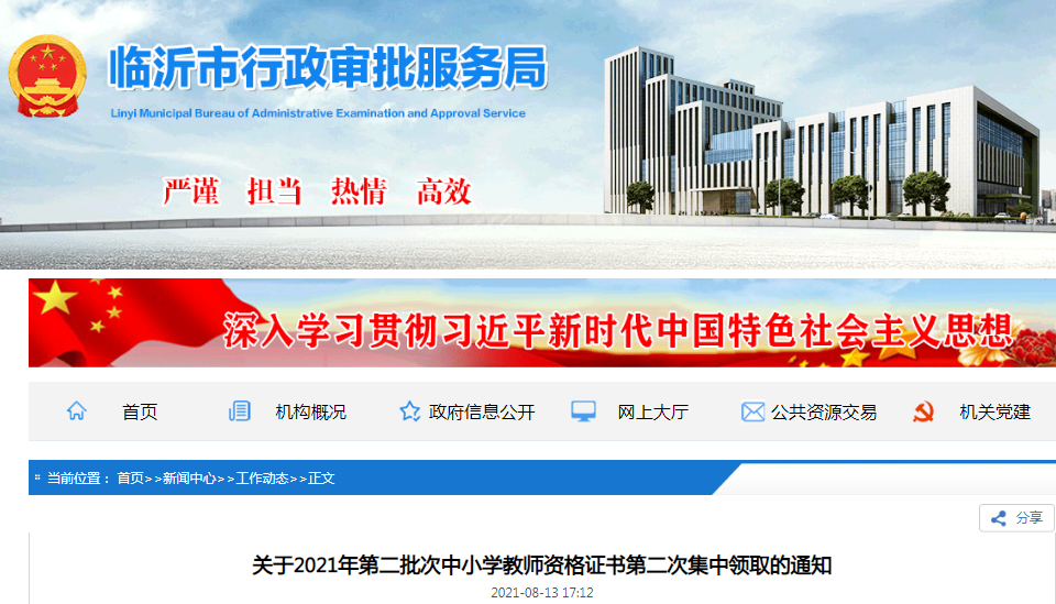 3、下次集中領(lǐng)取時間暫定2022年第一批次教師資格認定結(jié)束后,屆時請關(guān)注“臨沂審批服務(wù)”微信公眾號、臨沂市行政審批服務(wù)局官方網(wǎng)站有關(guān)通知。