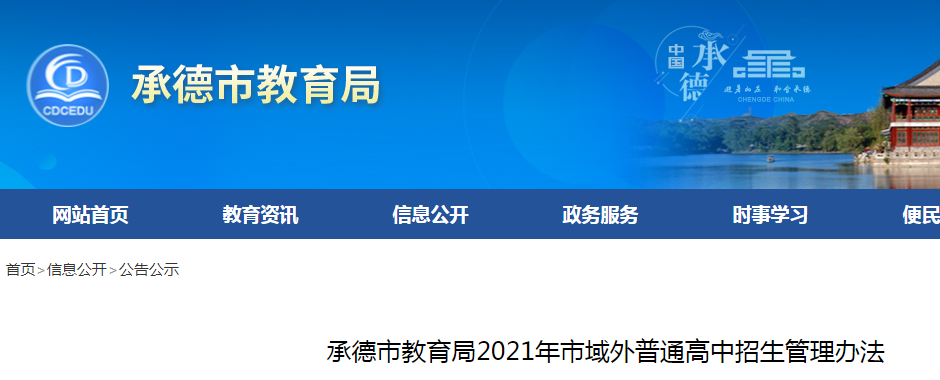 從承德市教育局了解到,2021年河北承德域外普通高中招生管理辦法已發(fā)布,為方便考生了解情況,現(xiàn)將有關(guān)事宜通知如下: