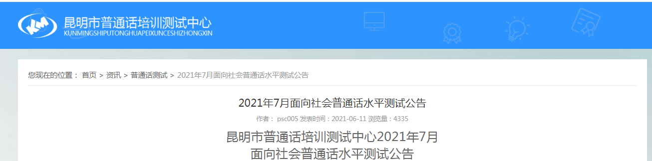 為進一步滿足廣大社會考生的測試需求,根據(jù)現(xiàn)階段我市新冠肺炎防控情況及昆明市普通話培訓測試中心工作安排,現(xiàn)將2021年7月面向社會普通話水平開放測試相關(guān)事宜公告如下: