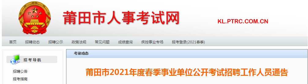 本次招考的報(bào)名網(wǎng)站為莆田市人事考試網(wǎng)(https://kl.ptrc.com.cn/)。報(bào)名采取網(wǎng)上直接報(bào)名的方式進(jìn)行。