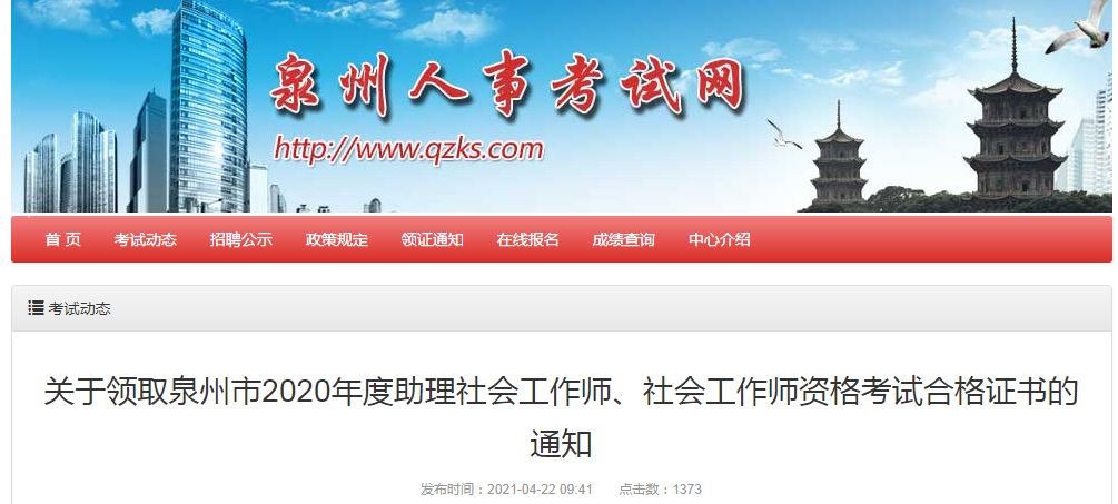 泉州市2020年度助理社會(huì)工作師、社會(huì)工作師資格考試合格證書已可供領(lǐng)取?,F(xiàn)就有關(guān)問題通知如下:
