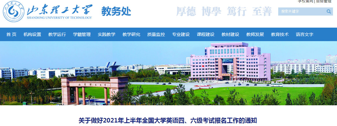 從山東理工大學(xué)教務(wù)處獲悉,2021上半年山東理工大學(xué)英語(yǔ)四六級(jí)報(bào)名工作通知已公布,報(bào)名時(shí)間為3月17日-3月24日,具體詳情如下: