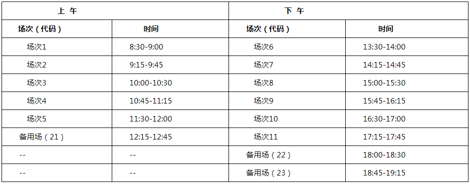 英語四級口語考試(CET-SET4)考試時間為5月22日(F211次),英語六級口語考試(CET-SET6)考試時間為5月23日(S212次),具體場次安排如下: