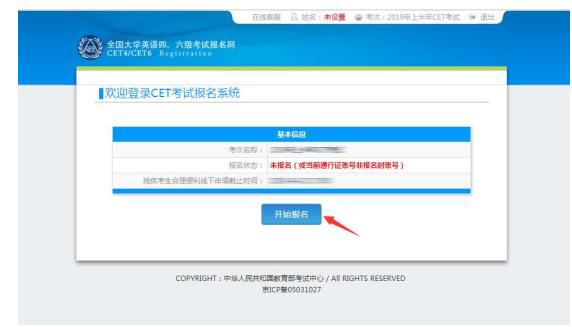 7、進(jìn)入登錄報(bào)名系統(tǒng)界面,點(diǎn)擊“開始報(bào)名”