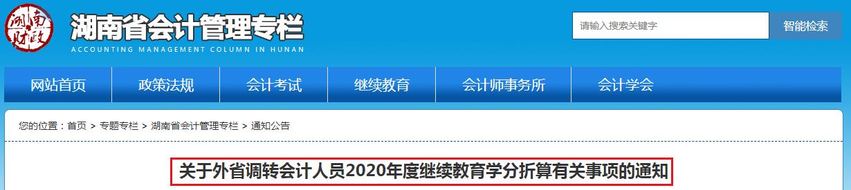 湖南省財(cái)政廳:關(guān)于外省調(diào)轉(zhuǎn)會(huì)計(jì)人員2020年度繼續(xù)教育學(xué)分折算有關(guān)事項(xiàng)的通知