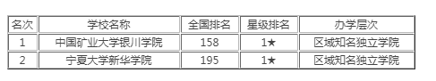2021年寧夏回族自治區(qū)的獨(dú)立學(xué)院為中國礦業(yè)大學(xué)銀川學(xué)院,排名第二的獨(dú)立學(xué)院為寧夏大學(xué)新華學(xué)院。
