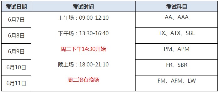 2021年6月ACCA考試于2021年6月7日至11日進行,具體安排如下: