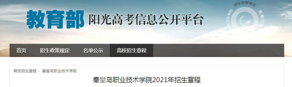 從教育部陽光高考信息公開平臺獲悉,秦皇島職業(yè)技術(shù)學(xué)院2021年招生章程已公布,具體詳情如下: