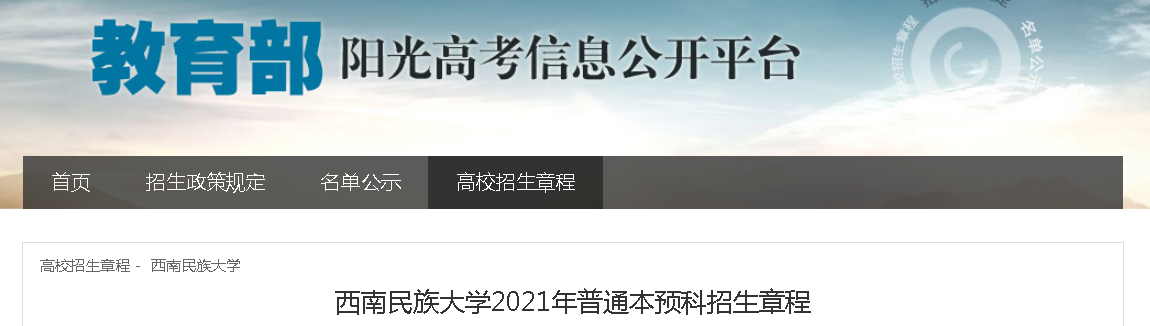 從教育部陽光高考信息公開平臺(tái)獲悉,西南民族大學(xué)2021年普通本預(yù)科招生章程已公布,具體詳情如下: