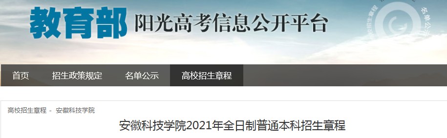 從教育部陽光高考信息公開平臺(tái)獲悉,安徽科技學(xué)院2021年全日制普通本科招生章程已公布,具體詳情如下: