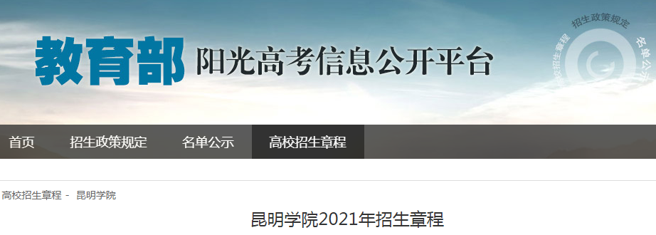 從教育部陽(yáng)光高考信息公開(kāi)平臺(tái)獲悉,昆明學(xué)院2021年招生章程已公布,具體詳情如下: