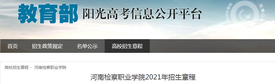 從教育部陽光高考信息公開平臺獲悉,2021年河南檢察職業(yè)學(xué)院普通高考招生章程已公布,具體章程內(nèi)容整理如下: