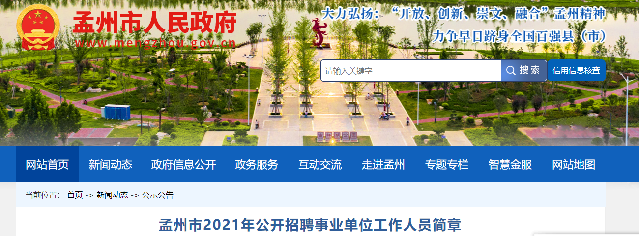 2021河南省焦作市孟州市招聘事業(yè)單位人員公告【259人】已發(fā)布,報名時間:2021年06月08日08:00-2021年06月11日18:00。為了方便考生報考,現(xiàn)將相關(guān)信息發(fā)布如下: