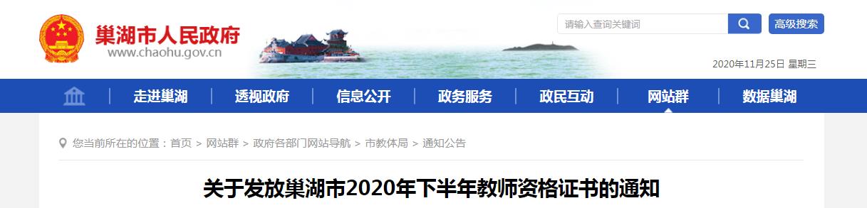 巢湖市2020年下半年教師資格認(rèn)定工作已全部結(jié)束,現(xiàn)將巢湖市教師資格證書發(fā)放事項(xiàng)通知如下: