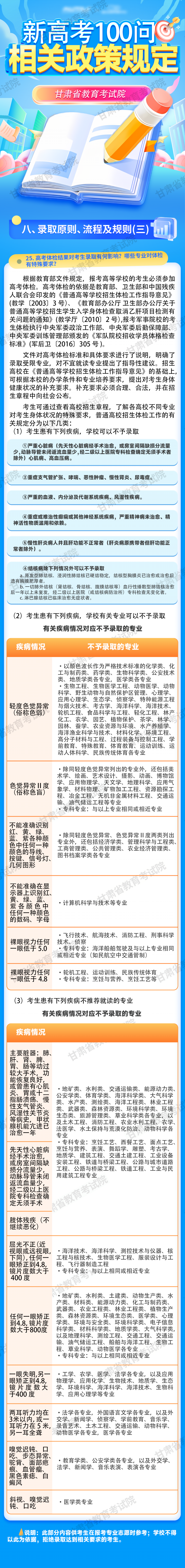 從甘肅省教育考試院獲悉,2024年甘肅新高考相關(guān)政策規(guī)定(十一)之高考體檢結(jié)果對考生錄取的影響,具體詳情如下: