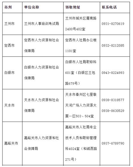 根據甘肅省人力資源考試中心提示“2020年甘肅省中級會計證書領取時間2021年1月25日起”請考生到報名所屬地的市州領取,具體2020年甘肅中級會計證書領取時間、領取地點及電話如下: