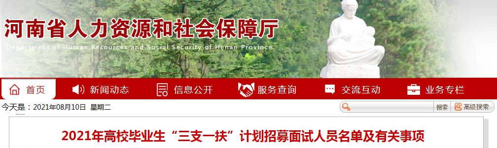 按照中共河南省委組織部、河南省機(jī)構(gòu)編制委員會(huì)辦公室、河南省人力資源和社會(huì)保障廳、河南省財(cái)政廳等11部門(mén)聯(lián)合印發(fā)的《關(guān)于實(shí)施第四輪高校畢業(yè)生“三支一扶”計(jì)劃的通知》(豫人社〔2021〕6號(hào))和河南省人力資源和社會(huì)保障廳《關(guān)于印發(fā)<河南省2021年高校畢業(yè)生“三支一扶”計(jì)劃招募工作方案>的通知》規(guī)定,現(xiàn)將面試人員名單及有關(guān)事項(xiàng)公告如下:
