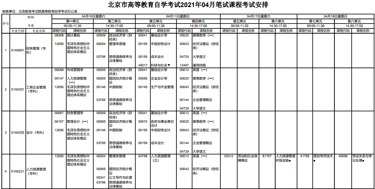 點(diǎn)擊查看完整版>>>北京市高等教育自學(xué)考試2021年04月筆試課程考試安排
