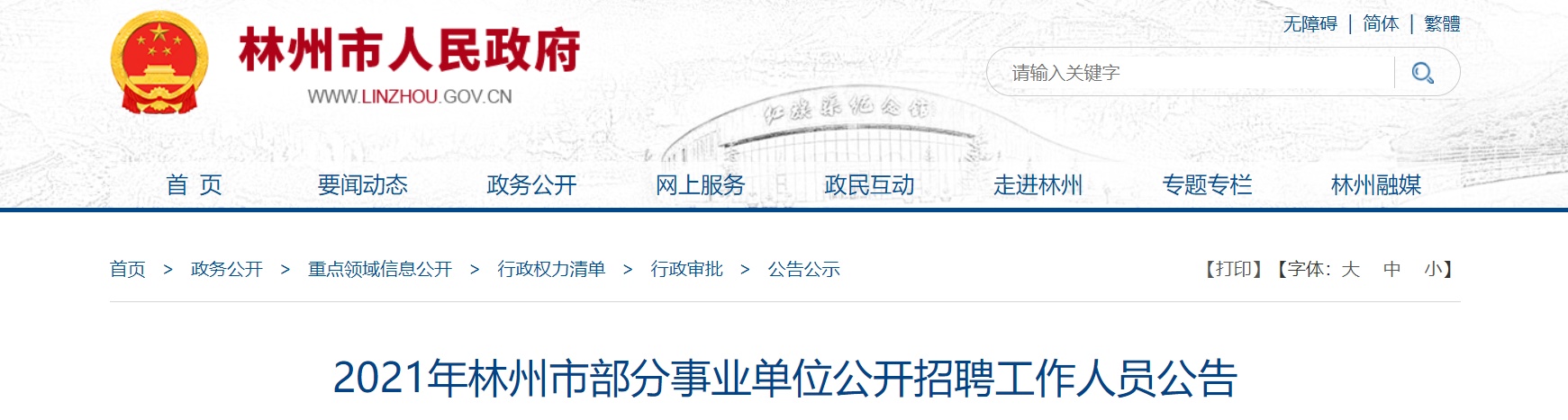2021年11月25日至12月3日在林州市人民政府網(wǎng)(http://www.linzhou.gov.cn/)發(fā)布招聘信息。
