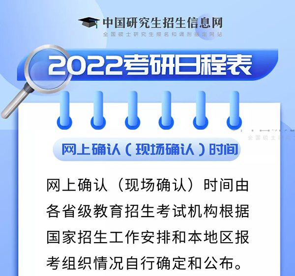 1.所有考生(不含推免生)均應當在規(guī)定時間內(nèi)在網(wǎng)上或到報考點指定地點現(xiàn)場核對并確認其網(wǎng)上報名信息,逾期不再補辦。網(wǎng)上確認(現(xiàn)場確認)時間由各省級教育招生考試機構根據(jù)國家招生工作安排和本地區(qū)報考組織情況自行確定和公布。