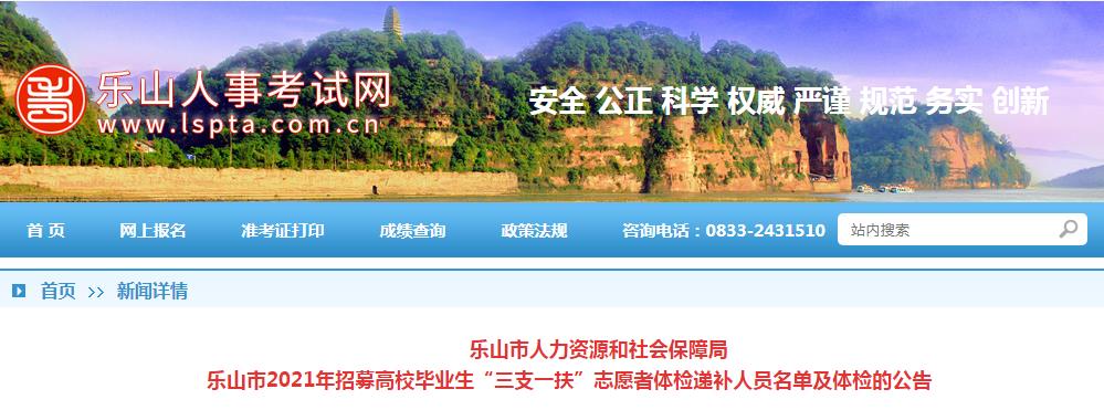 根據(jù)《四川省人力資源和社會保障廳四川省財政廳關(guān)于做好2021年度高校畢業(yè)生“三支一扶”計劃招募工作的通知》(川人社函〔2021〕368號)要求,現(xiàn)將樂山市2021年招募高校畢業(yè)生“三支一扶”志愿者體檢遞補人員名單及體檢有關(guān)事項予以公告: