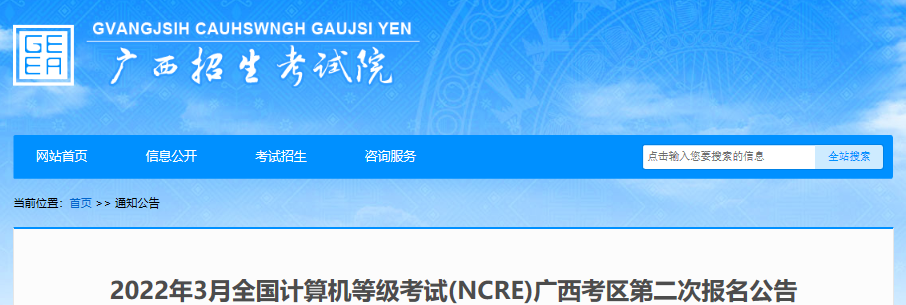 2022年3月全國(guó)計(jì)算機(jī)等級(jí)考試(NCRE)廣西考區(qū)第二次報(bào)名公告