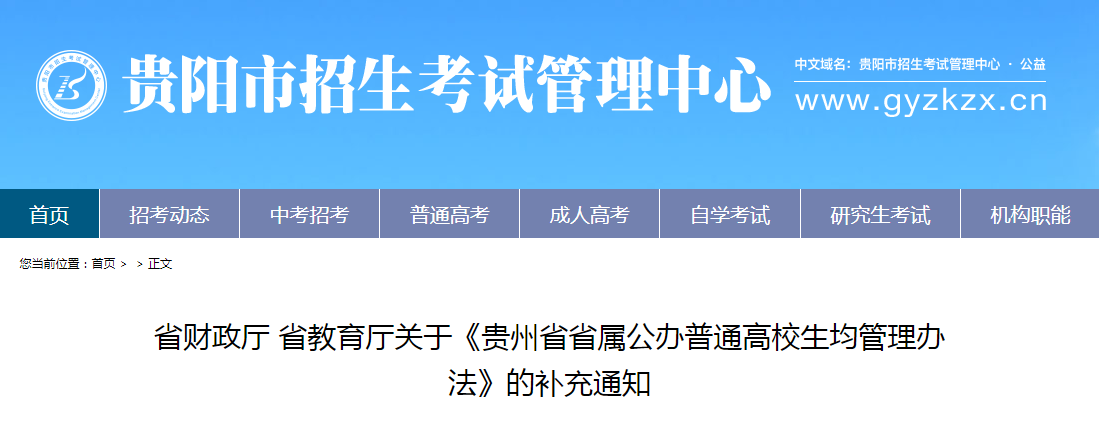 從貴陽市招生考試管理中心了解到,關于2022年貴州省省屬公辦普通高校生均管理辦法的補充通知已發(fā)布,詳細內容如下: