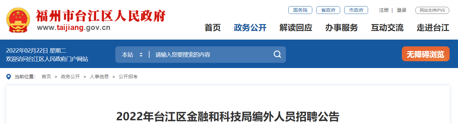 2022年福建福州臺(tái)江區(qū)金融和科技局編外人員招聘公告已發(fā)布,郵箱報(bào)名截止時(shí)間為:2022年2月25日。現(xiàn)將招聘公告原文發(fā)布如下: