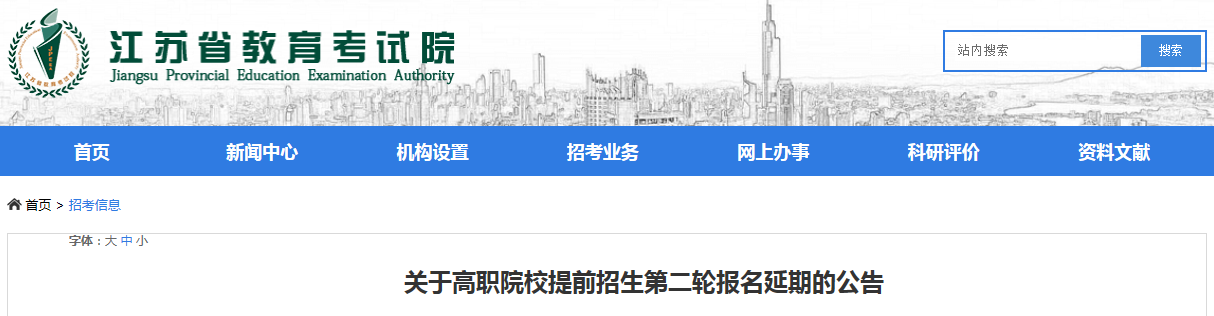 從江蘇省教育考試院了解到,關(guān)于江蘇省2022年高職院校提前招生第二輪報名延期的公告 已發(fā)布,詳細內(nèi)容如下: