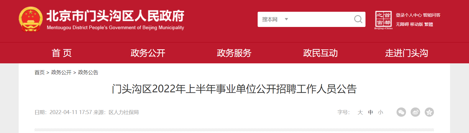 (十一)本次招聘公告和具體崗位要求以北京市人力資源和社會保障局、北京市門頭溝區(qū)人民政府網(wǎng)站發(fā)布的公告及附件為準(zhǔn),對其他機(jī)構(gòu)轉(zhuǎn)發(fā)的招聘公告不做解釋。