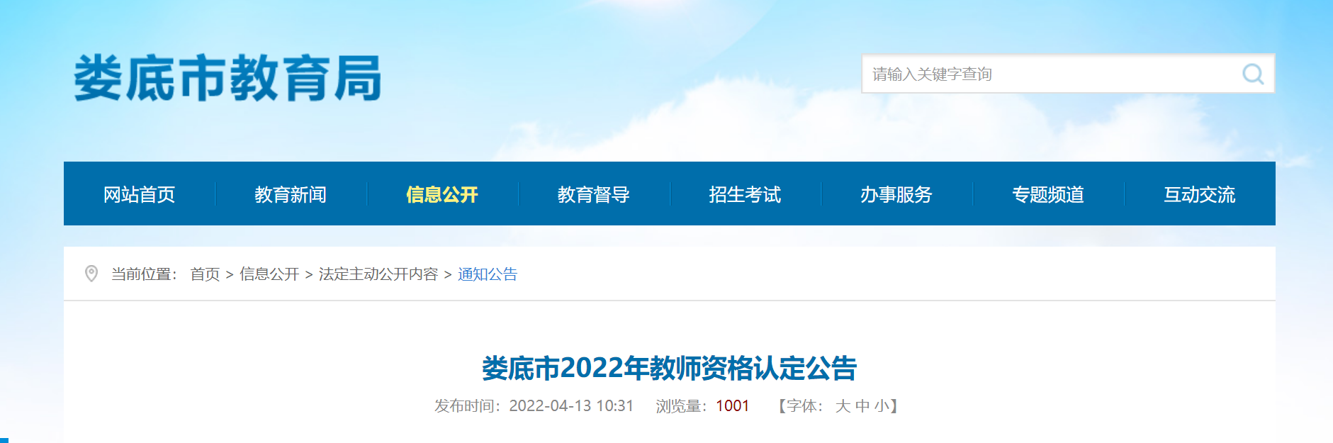從婁底市教育局獲悉,2022年湖南婁底教師資格認(rèn)定公告已公布,請相關(guān)人員仔細(xì)閱讀,具體詳情如下: