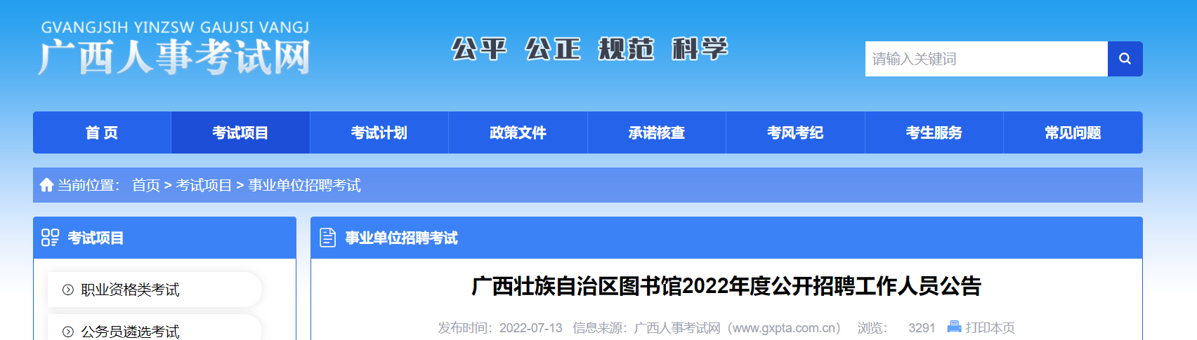 2022年廣西壯族自治區(qū)圖書館招聘工作人員公告已發(fā)布。報(bào)名時(shí)間:2022年7月19日9:00—2022年7月25日17:00。為您整理了以下內(nèi)容,供您參考。