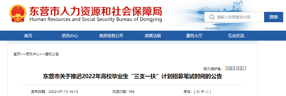 東營(yíng)市關(guān)于推遲2022年高校畢業(yè)生“三支一扶”計(jì)劃招募筆試時(shí)間的公告