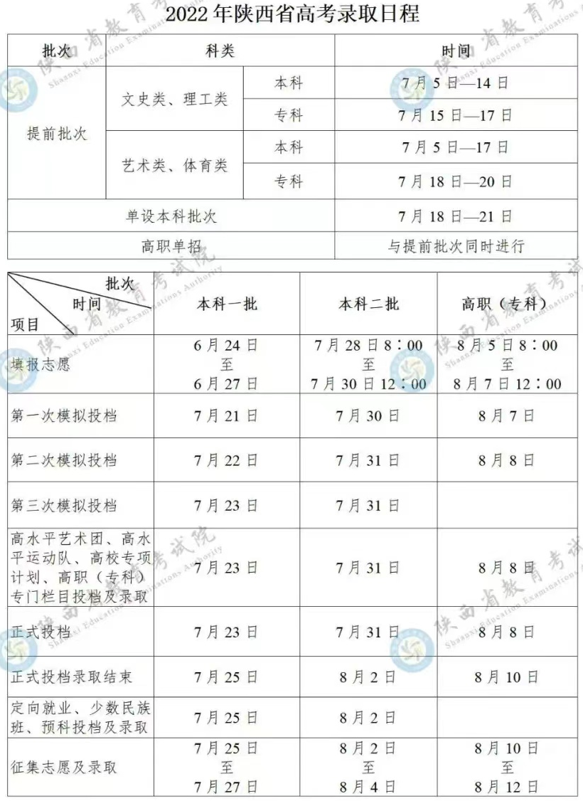 陜西2022年普通高校招生錄取工作即將全面正式開(kāi)始,各類別各批次錄取進(jìn)程安排如下。