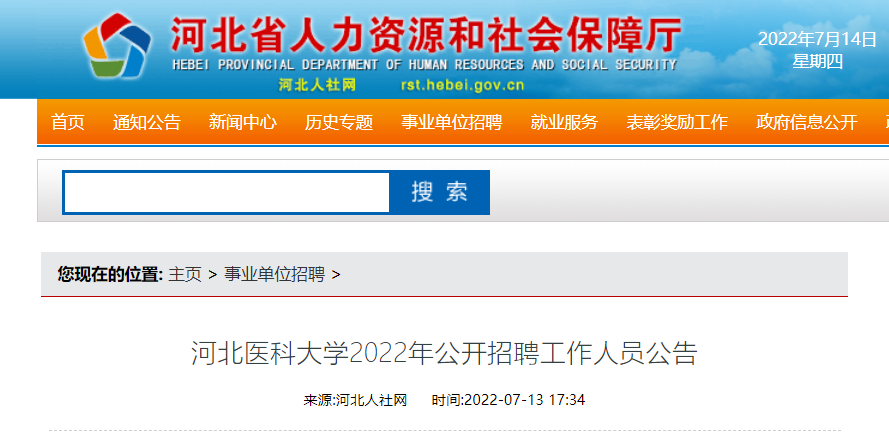 2022年河北醫(yī)科大學(xué)公開招聘工作人員公告已發(fā)布,報(bào)名時(shí)間為2022年7月14日至7月20日,現(xiàn)將招聘公告原文發(fā)布如下: