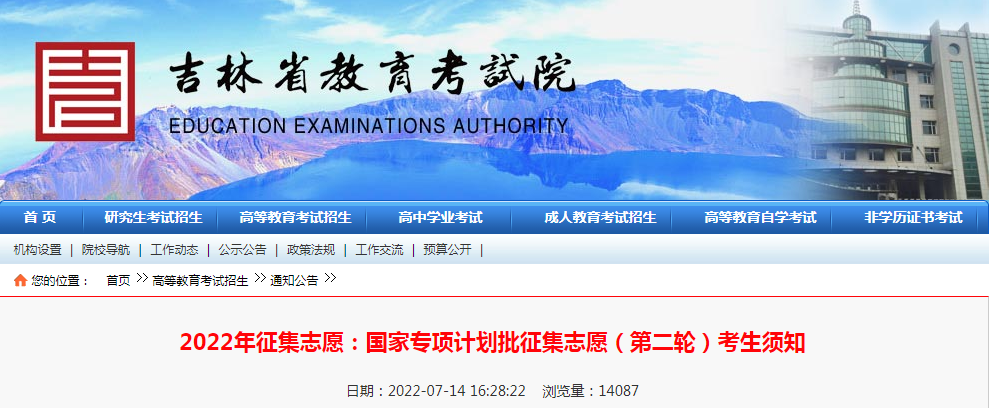從吉林省教育考試院了解到,2022年吉林國(guó)家專(zhuān)項(xiàng)計(jì)劃批征集志愿(第二輪)考生須知已發(fā)布,詳細(xì)內(nèi)容如下: