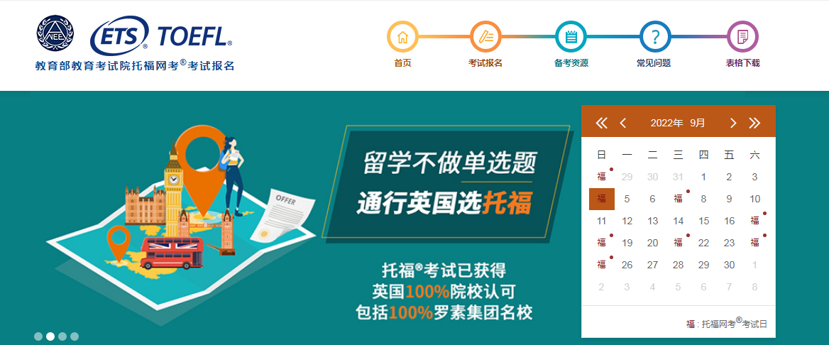 點(diǎn)擊進(jìn)入>>>2022年9月托福考試報(bào)名入口