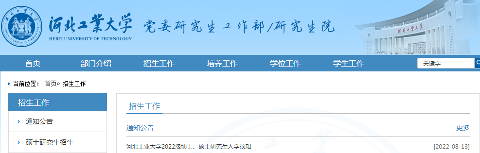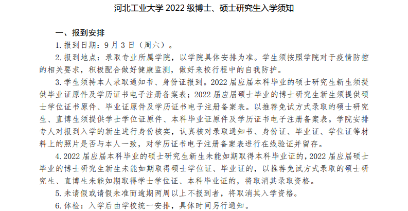 考研頻道從河北工業(yè)大學(xué)研究生院了解到,河北工業(yè)大學(xué)2022級碩士研究生入學(xué)須知已發(fā)布,詳情如下: