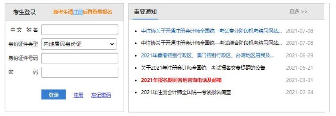 進(jìn)入注冊(cè)會(huì)計(jì)師全國(guó)統(tǒng)一網(wǎng)上報(bào)名系統(tǒng),選擇“考生登錄”